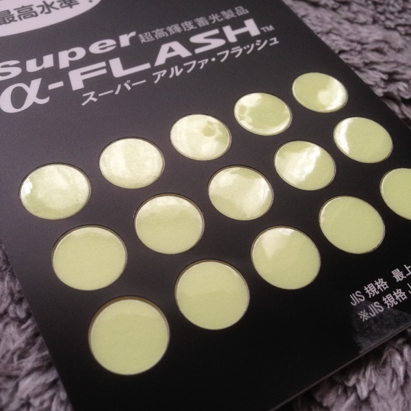 蛍光灯を消し2~3時間経つと他社製品は、光っているのかどうか分からなくなるくらい、光が弱くなってしまった。だがスーパーアルファフラッシュは、ぼんやりと光っているのが分かるレベルで踏みとどまってくれた。